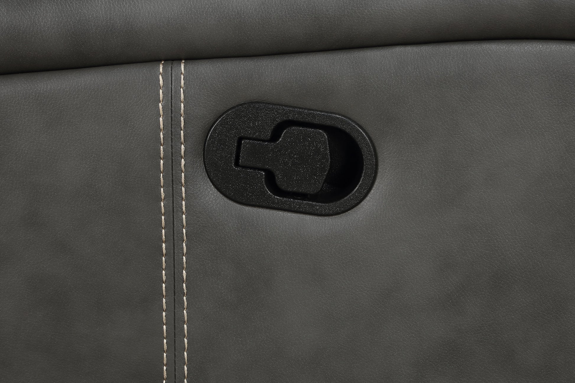 • Power lift recliner chair upholstered in soft grey leatherette with contrast stitching