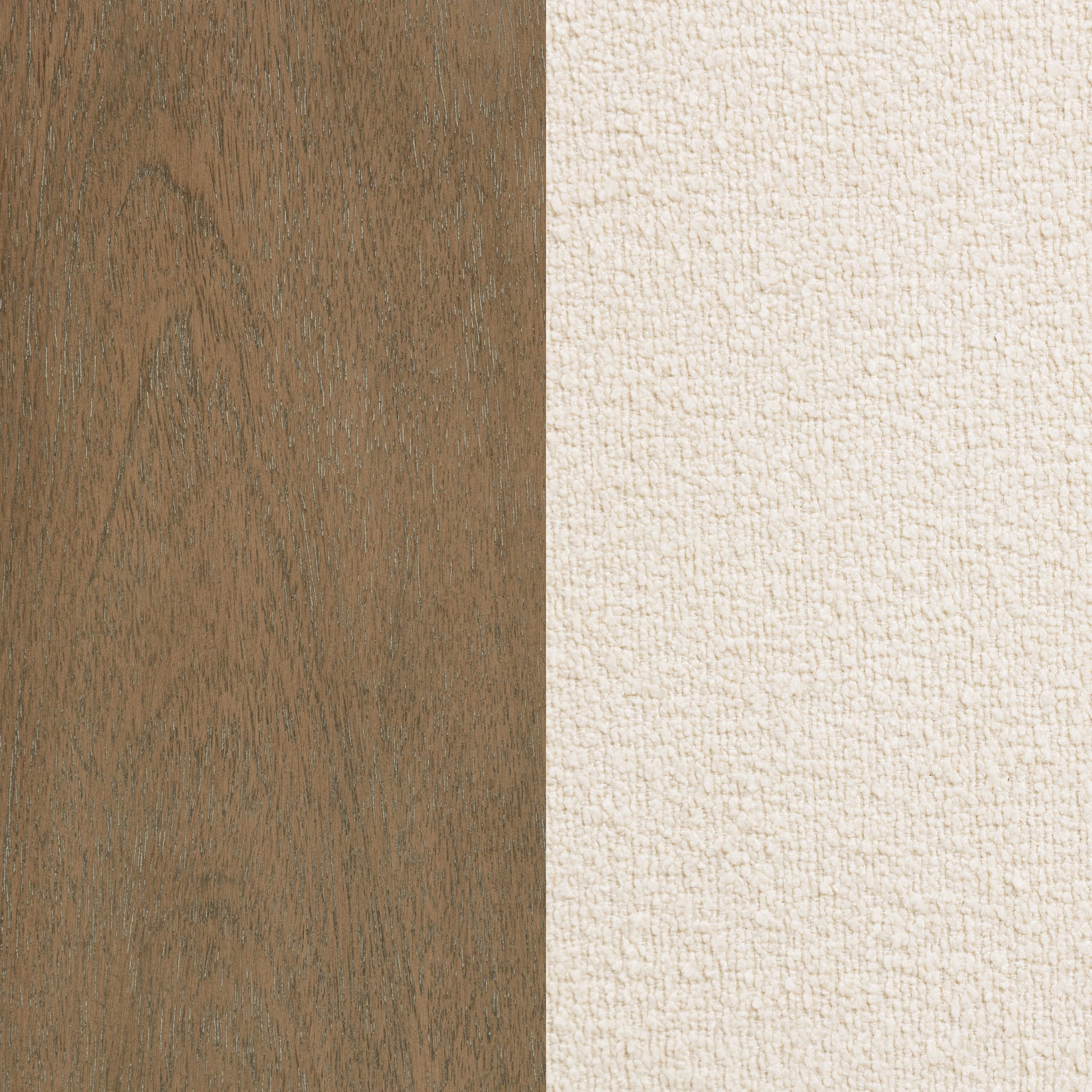 This French Provincial-inspired bed-end bench combines timeless elegance with functional comfort. Framed in solid poplar, engineered wood, and mango veneer, it features a washed mango finish that highlights the natural wood grain. The cushioned seat is upholstered in soft ecru fabric, offering a refined touch and a comfortable place to sit. Gracefully curved legs and scalloped detailing enhance its classic design, making it a perfect accent piece for the foot of the bed or additional seating in any space.