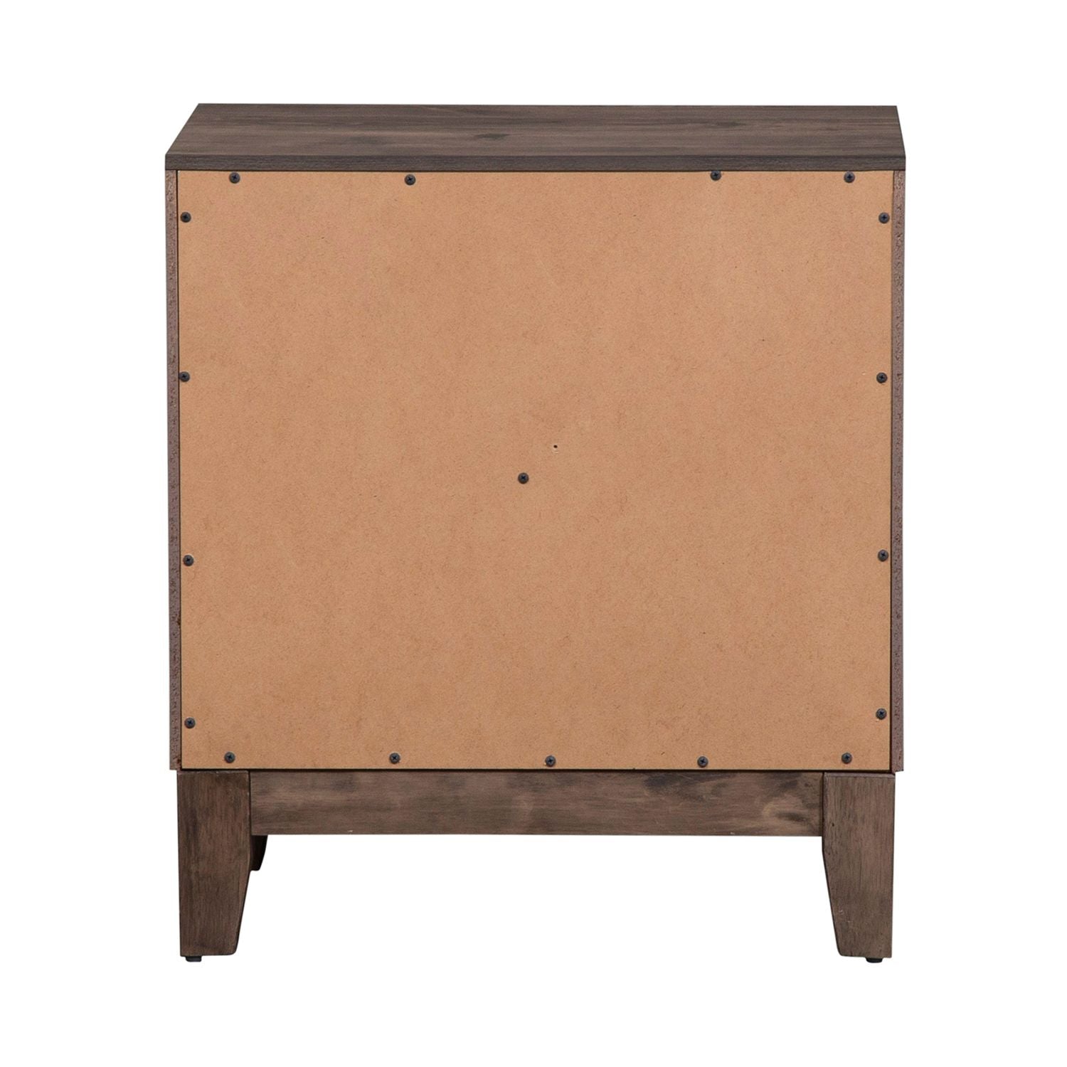 Enhance any room with this urban Ridgecrest two drawer night stand. Crafted by rubberwood solids and paper laminate, this piece features paper drawer interiors, bottom case dust proofing and antique brass bar pull hardware, all seamlessly anchored by the tapered leg base. Softness is added to the design with picture frame cases and drawer fronts, accompanied by a gorgeous canted molding on each drawer front.