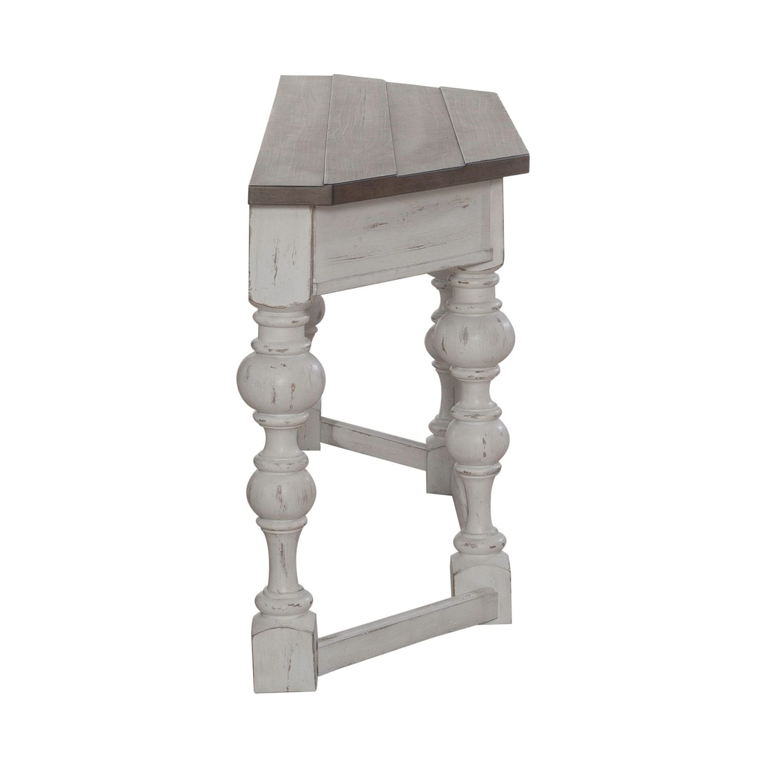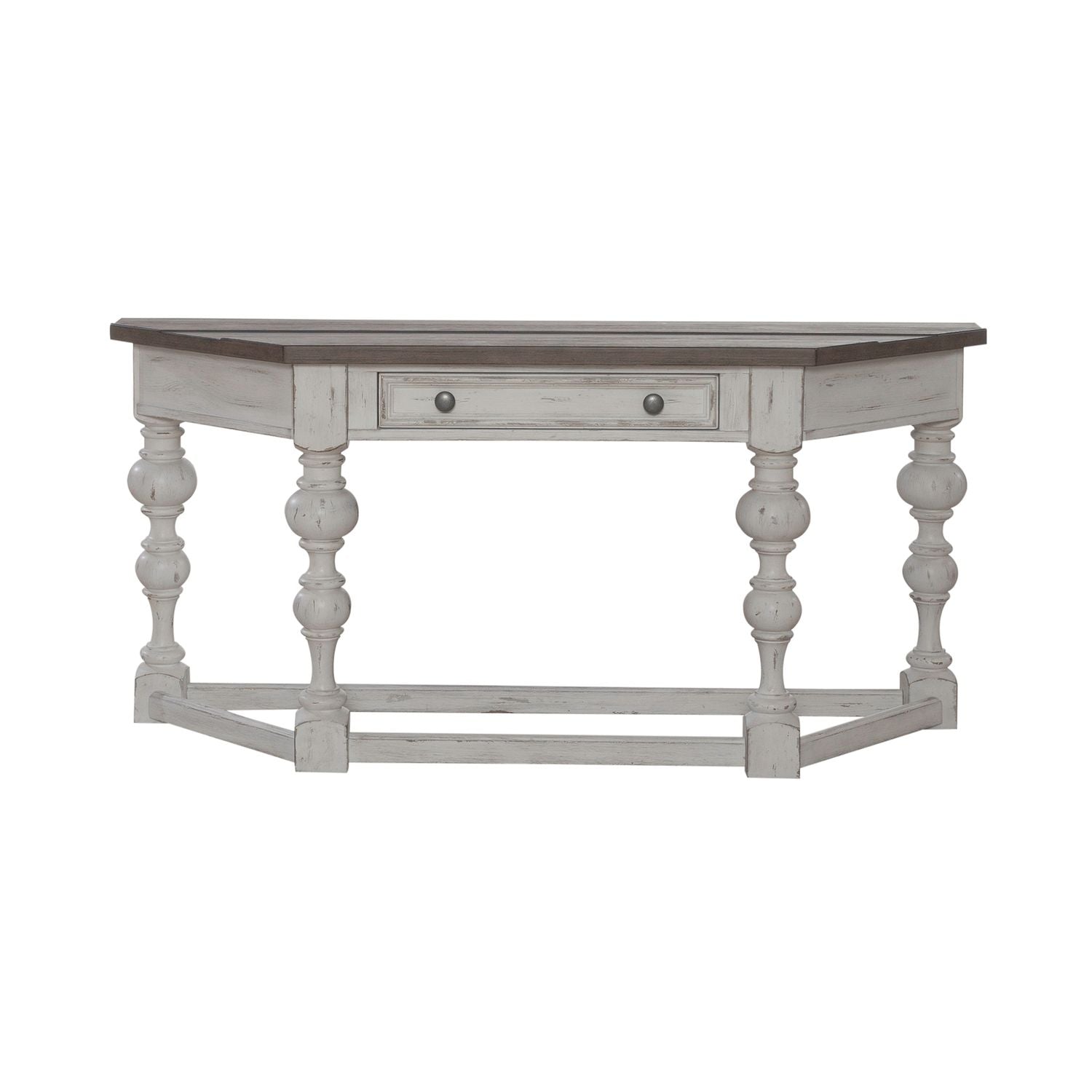 Give your home a personal touch that reflects your passions and personality with the River Place accent console table. Crafted with Pine solids and veneers, this piece features a heavily distressed two-tone Riverstone White and Tobacco finish. The table top showcases a high-low veneer pattern for textural interest. There is one full extension drawer with a wood framed drawer front that is accented with custom Antique Pewter knob hardware. Heavy, multi-turned legs flow into block feet and bottom stretchers for additional support. A great table for an entryway or behind the sofa, the River Place accent console table strikes the perfect balance of life on the coast and a comfy home tucked away in the hills.