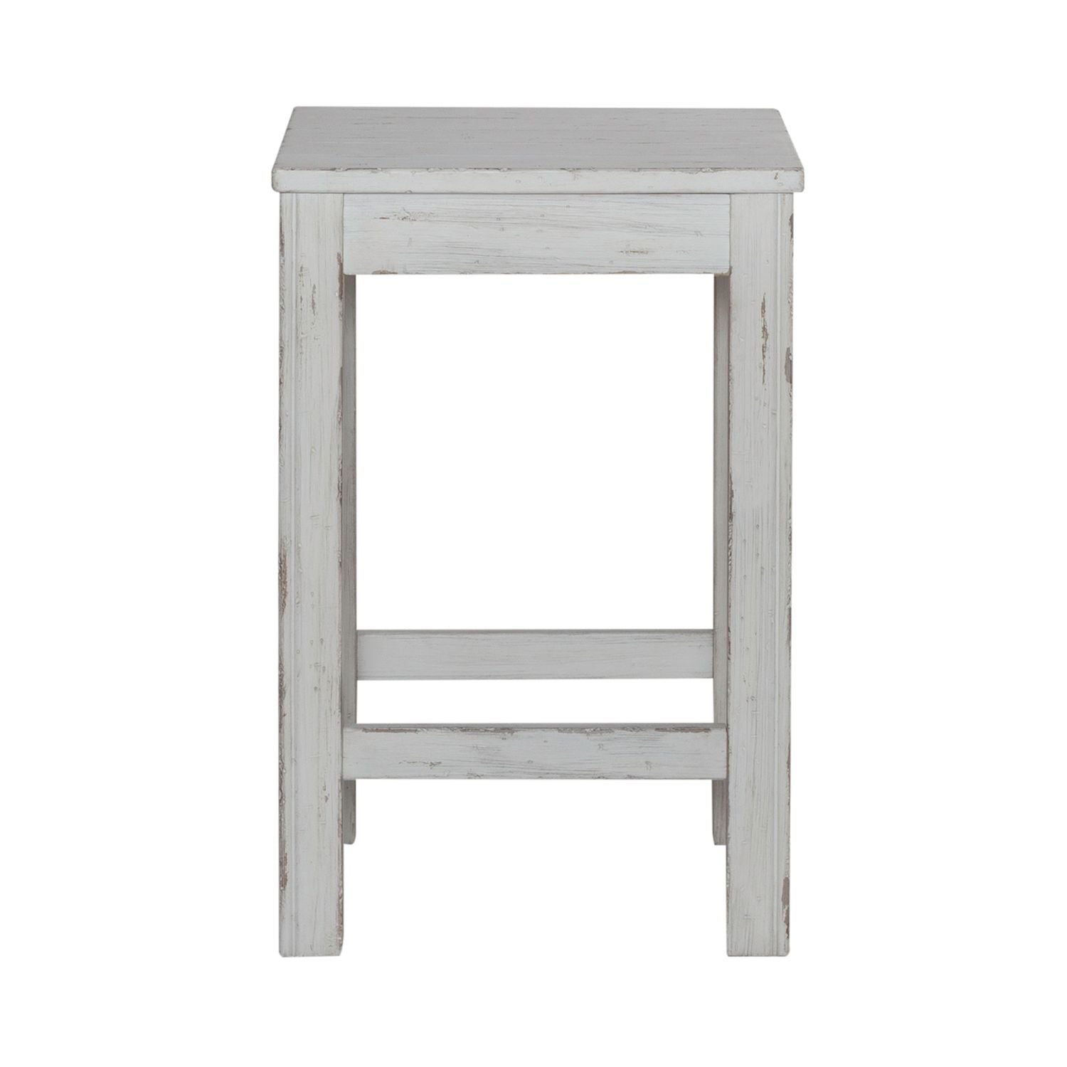Create a calm and peaceful oasis with the River Place console stool. Crafted with Pine solids, this piece features a heavily distressed Riverstone White finish. The seat of the stool is planked and combined with the square block legs which feature nylon chair glides to protect your flooring, creates an inviting and airy atmosphere in your home. The River Place console stool strikes the perfect balance of life on the coast and a comfy home tucked away in the hills.
