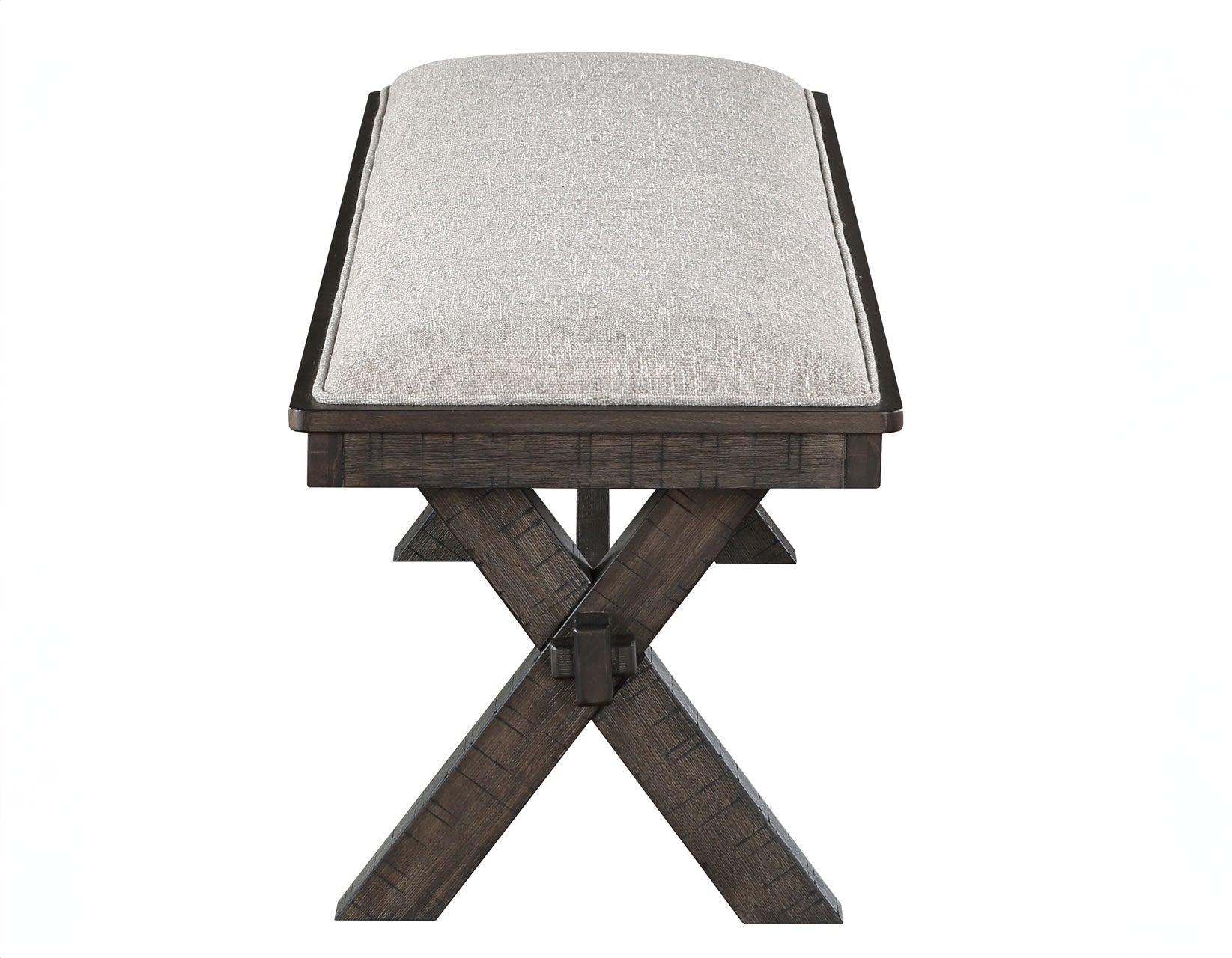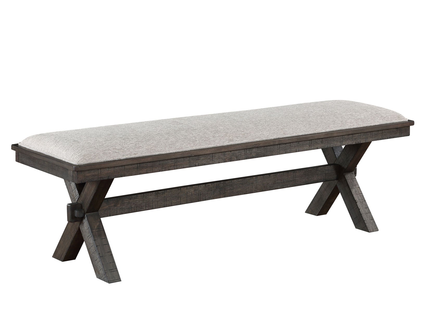 Style, comfort, and durability in a bench for dining, bedroom or hallway settings. The Riverdale bench offers authentic details like exposed tenon and a double trestle base in a seat for modern farmhouse, cottage or any casual setting. Solid Asian hardwoods and a light black finish let the character of the wood show through while advanced distressing techniques give the bench the feel of a time-worn antique. A comfortable, casual and stylish addition to any home environment.