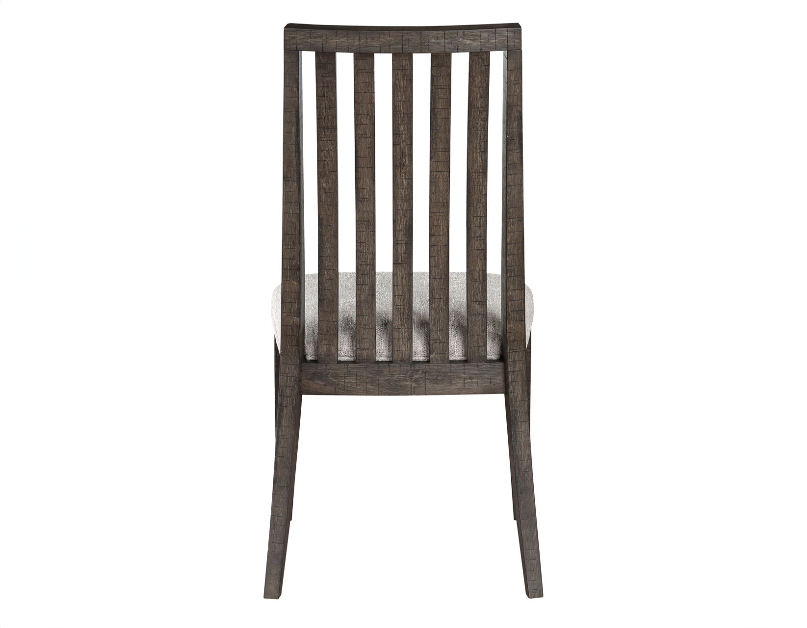 A rustic Side Chair with transitional styling to complement farmhouse, rustic modern or any transitional scheme. Cushioned with three inch comfort foam seat, the Riverdale Side Chair is built for comfort as well as style. Featuring a modern schoolhouse back with distinctive wood scoring and saw rasping distressing, this chair is hand-stained in a nuanced light black over Asian hardwoods.
