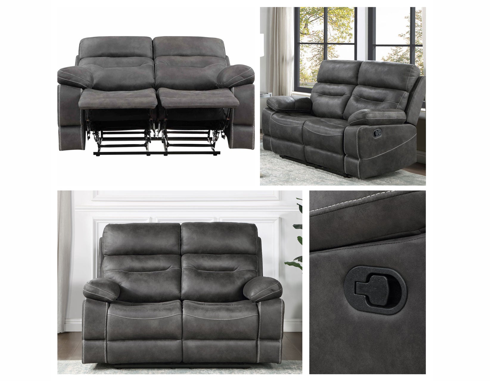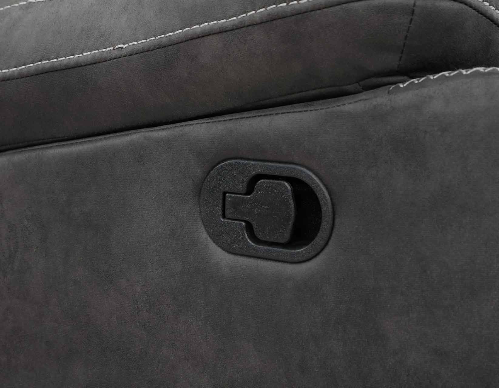 Introducing the Rudger reclining loveseat – the ultimate in comfort and style. Contrasting baseball stitches accent the bomber jacket-like microsuede cover that combine with clean lines to exude a rugged yet refined charm. A deeply padded seat and bustle back design are built with fiber-wrapped foam and pocket coil construction to offer extra padding where you need it.