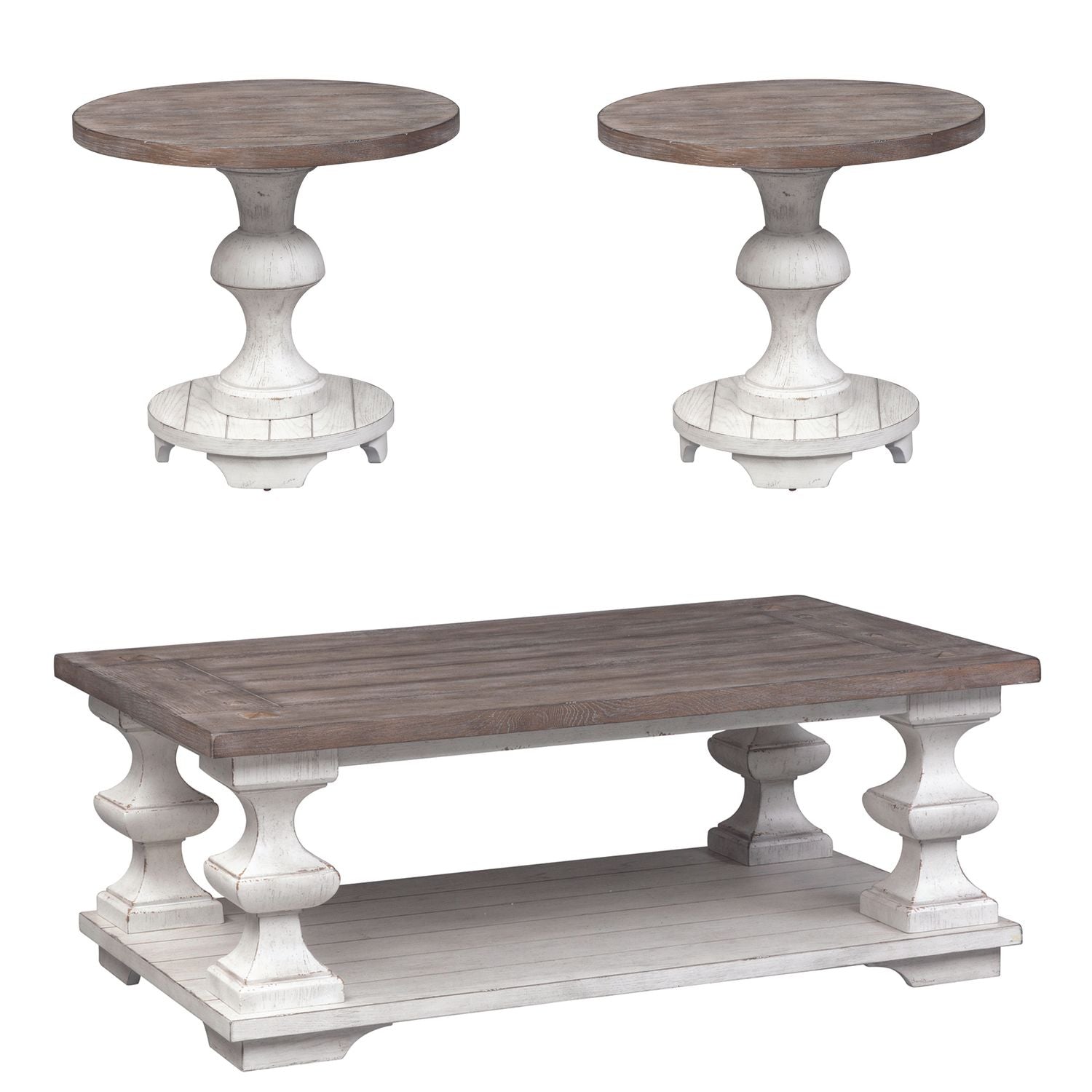 Spanish style Sedona is a step back in time to elegance. Crafted of rubberwood solids and oak veneers finished in Kona brown. Features planked tops with square peg accents, cocktail has bottom shelf for additional storage, anchored by large square turned legs and end table features round turned pedestal base. This gorgeous collection will be a great addition to any traditional style space. Consists of one cocktail table and two round ends tables.