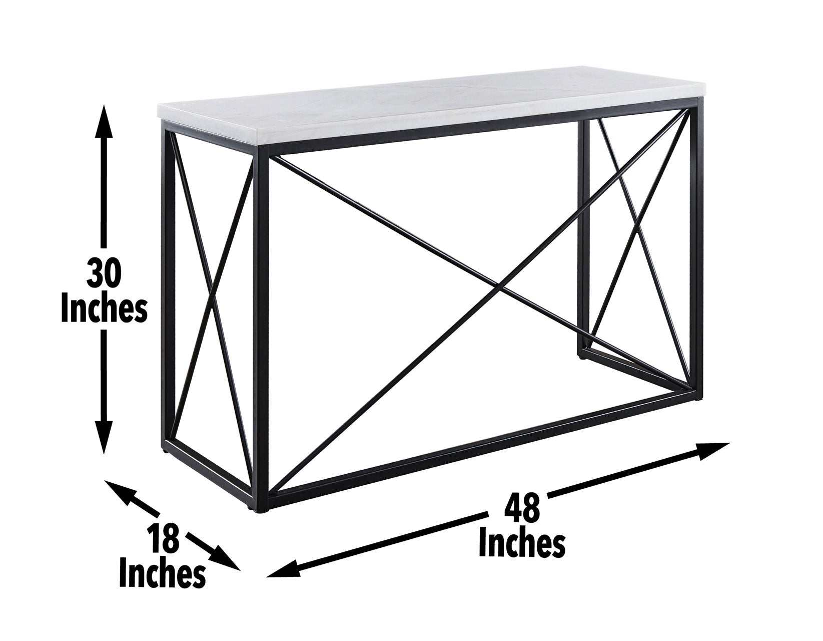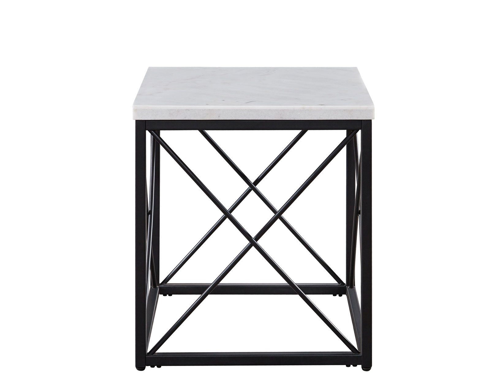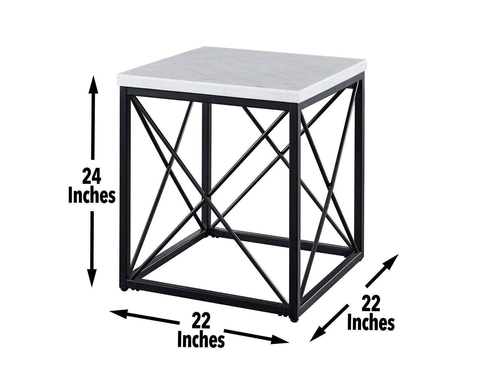 A modern occasional collection featuring a unique modern latticework iron base with stunning white marble tops. This mixed media set feels light and airy but its marble tops give extra durability for heavy duty use in the toughest environments, the family room. Bring style and beauty to your living room tables with Skyler by Steve Silver Company.