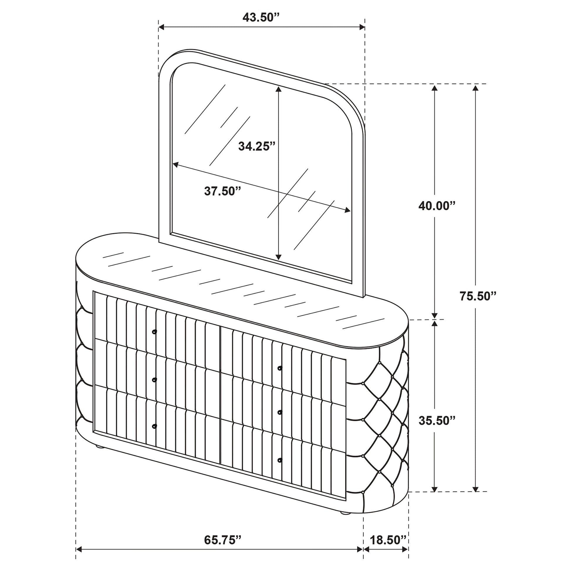 Sonya 6-drawer Upholstered Bedroom Dresser with Mirror Ivory