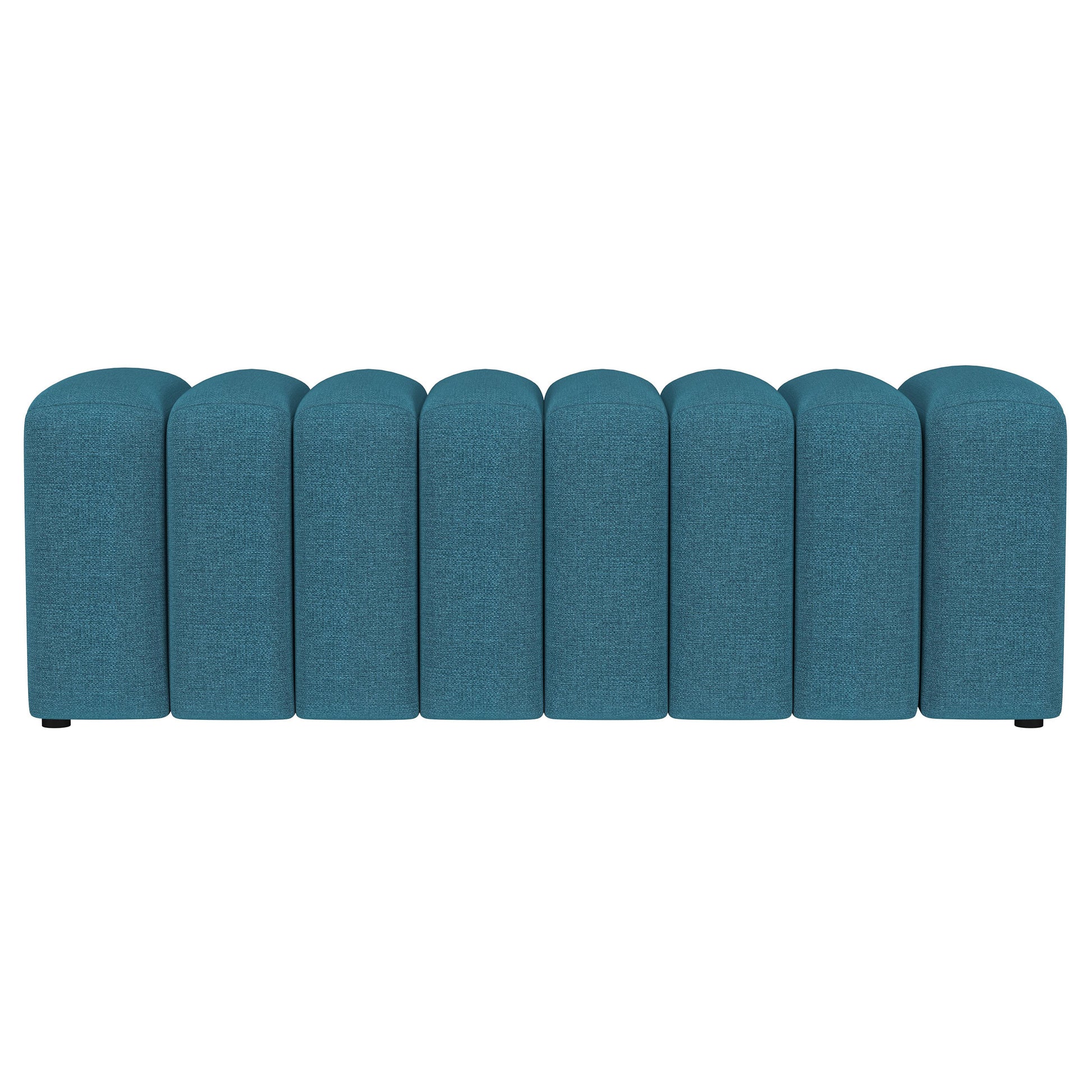 Introduce glam texture and dimension with a decorative upholstered bench. This modern creation features an undulating silhouette without arms or a back, offering sleek style and seating. Perfect for a sophisticated foyer or living room, it adds a pop of color and rich dimensionality with subtle variation in textured fabric. It makes a chic replacement for a coffee table in a linear sitting area, complete with foam cushioning that's firm enough to host a serving tray. Minimal feet create a seamless look and feel in any setting.