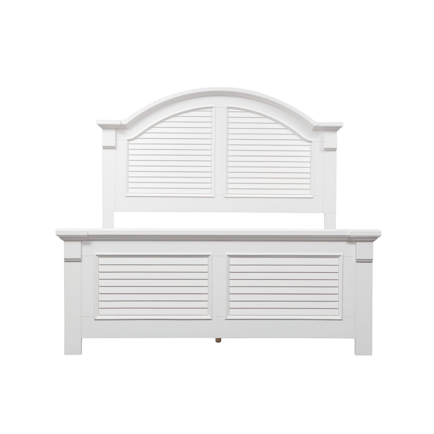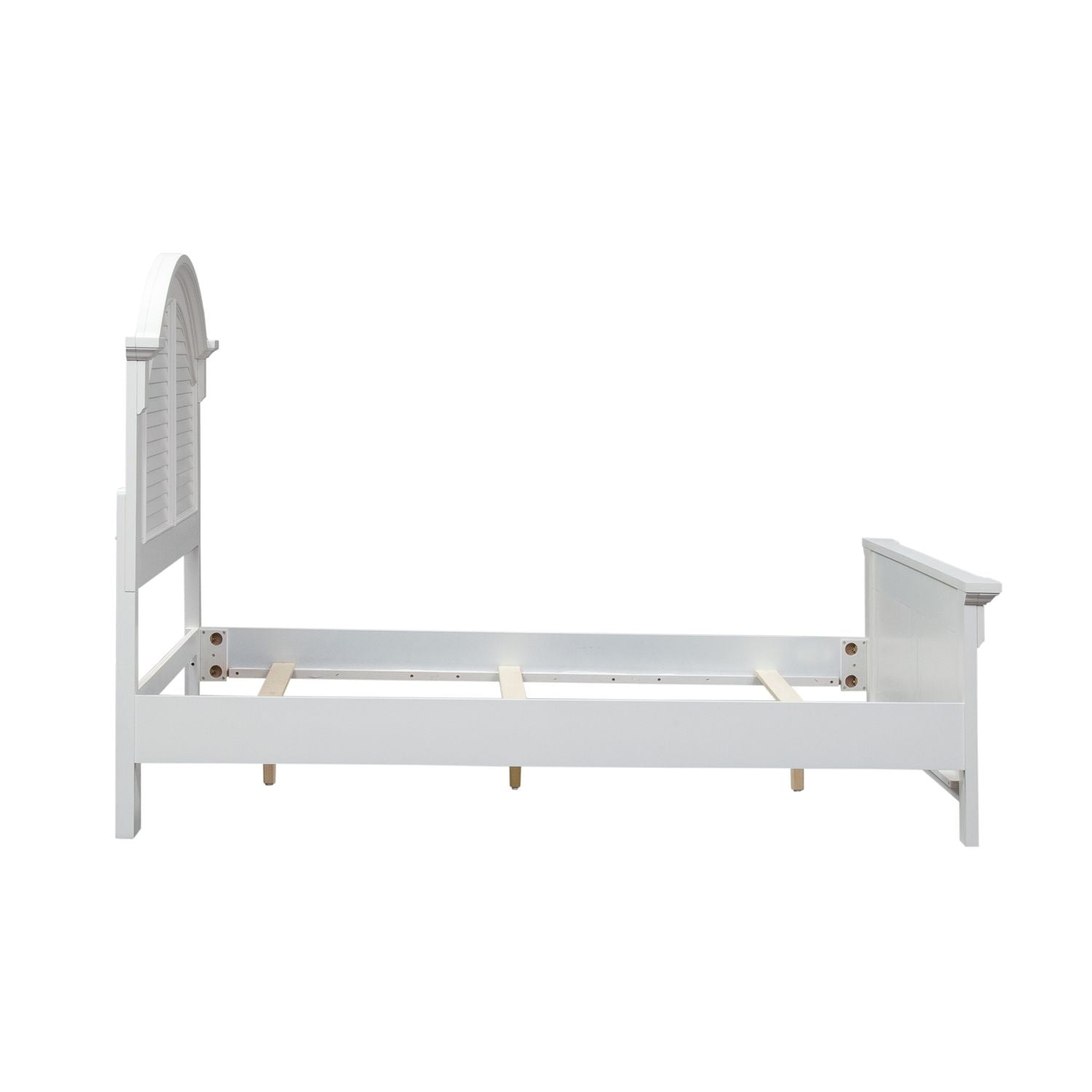 Invite the cottage style Summer House panel bed into your room. The oyster white finish is accented by louvered panels and arched crown molding, adding to the cottage charm. Made of pine and poplar solids, this bed features bolt-on rails and a center supported slat system, making this a sturdy and reliable bed.