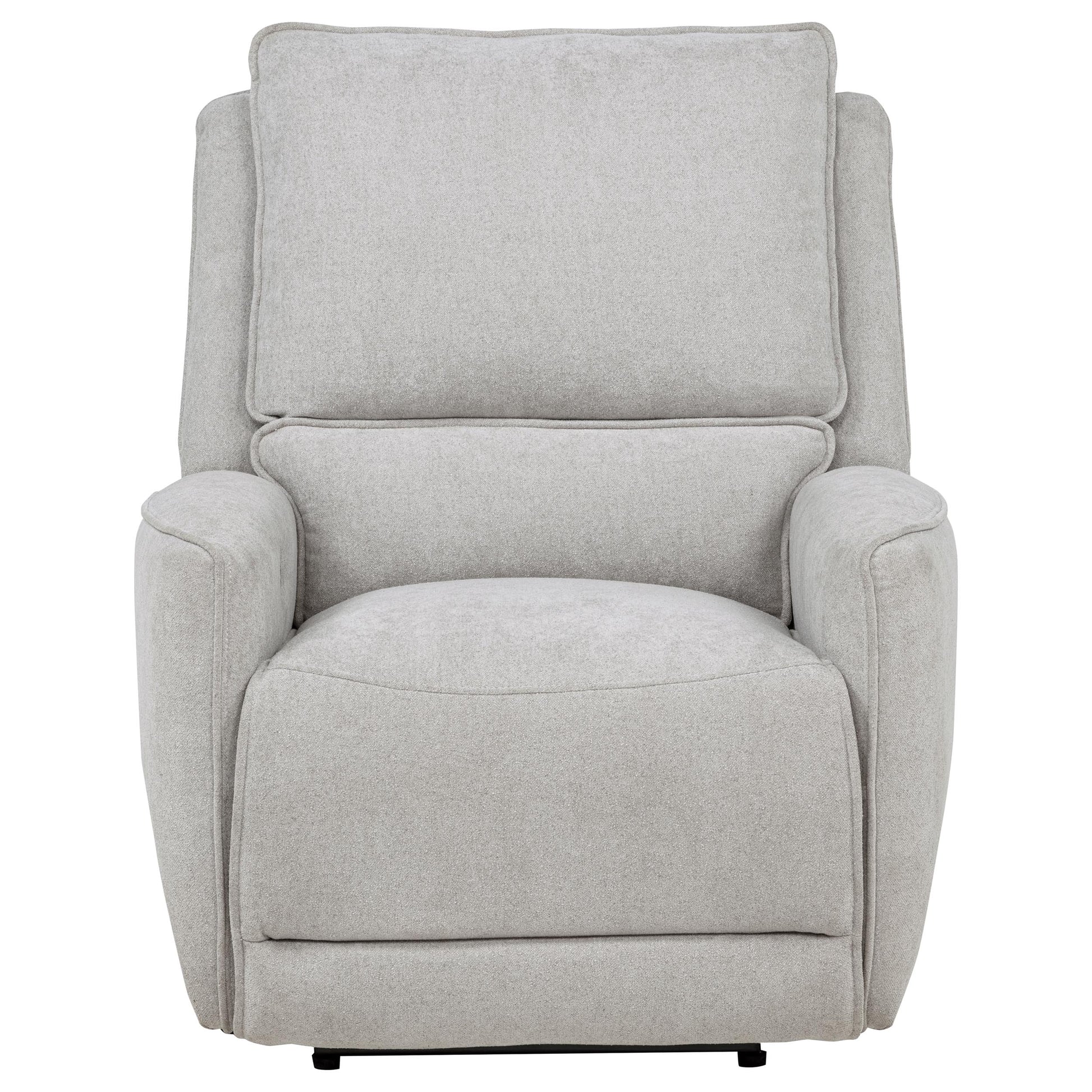 • Power recliner with sculpted form and plush padding offers cozy, modern comfort