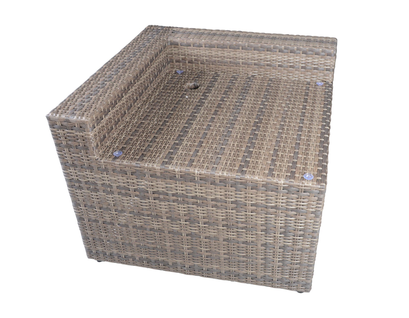 Sit a large crowd outside with the weather- resistant Tamyra sectional! Resin wicker and stain and fade resistant covers are built for outdoors but with the comfort you expect from regular upholstery with 6-inch removable cushions for when the weather gets bad.. The Corner Table features a removable glass top with an umbrella hole and a door on the back for storage. The Ottoman is constructed of UV-resistant resin wicker and a removable cushion from Solution-Dyed Acrylics for stain and fade resistance. Upholstery with indoor looks but built so you can enjoy the great outdoors!