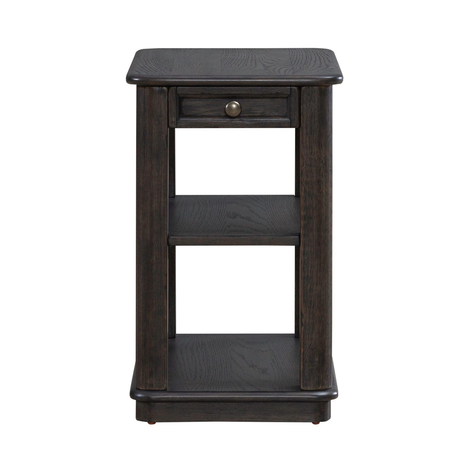 Create an unforgettable setting with casual elegance with the Wallace chairside table. Meticulously crafted using Rubberwood solids and Oak veneers, this table features an Aged Oak finish. At the heart of this exquisite piece is the convenience of a black laminated pull-out shelf. This innovative addition is not only a stylish accent but also a functional solution for placing your drink. It serves as the perfect spot for your favorite beverage, ensuring easy access while minimizing the hassle of condensation cleanup. The two open bottom shelves provide ample space for displaying books, magazines, or decorative items, allowing you to infuse your personal style into your living area. The flowing legs and softly rounded corners add a touch of grace to the design, creating an elegant aesthetic that complements various decor styles. Upgrade your home with the Wallace chairside table.