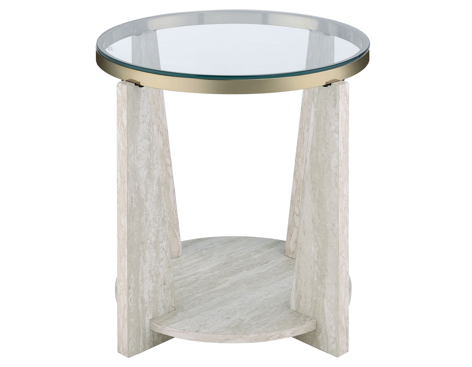 The Wanda 3-Piece Table Set combines modern style with functionality, featuring a 42″ round castered coffee table and two 24″ round end tables. Sleek tempered glass tops provide elegant surfaces for display, while satin brass accents and faux stone bases add a luxurious touch at an affordable price. Architectural supports create visual contrast, and the coffee table’s casters ensure easy mobility for cleaning or rearranging. Perfect for tying together a cohesive living room, this set blends sophisticated design with everyday practicality.