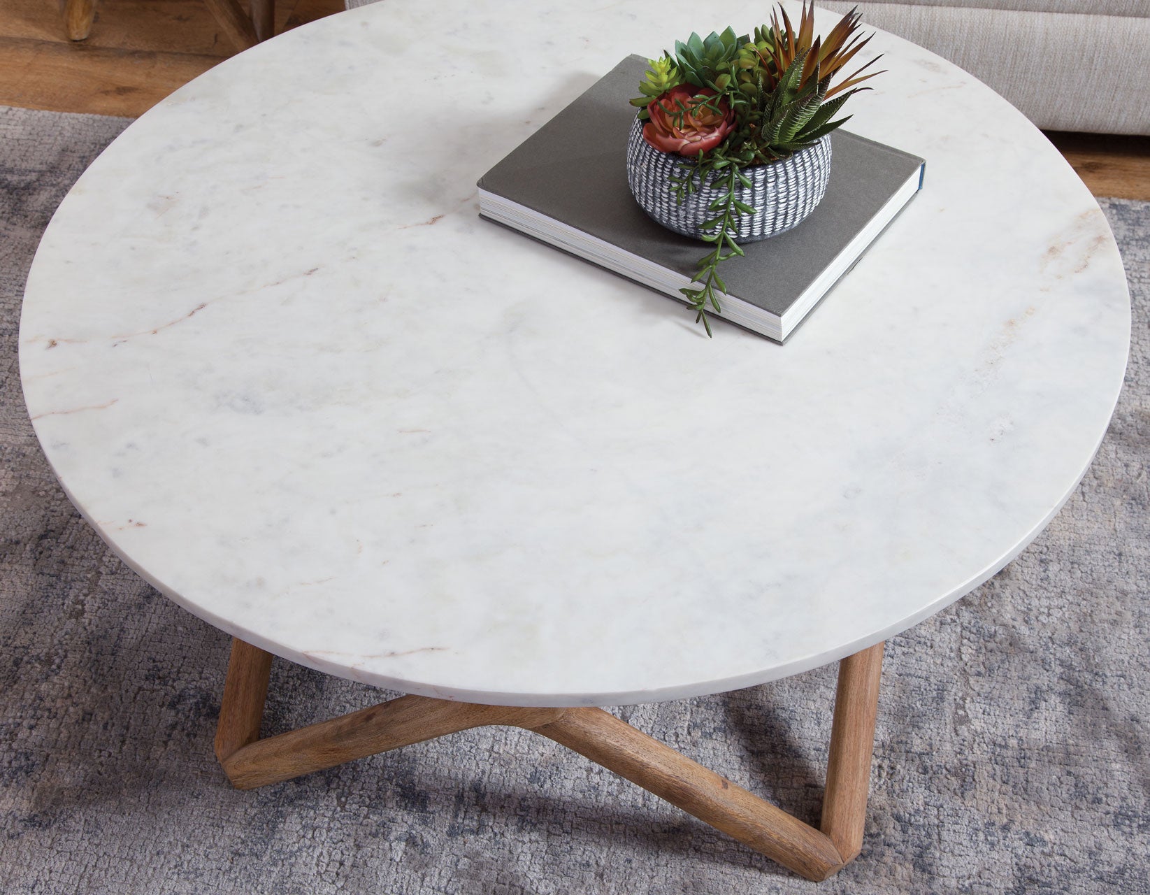 Wyman Banswara 36″ Round White Marble Top Cocktail Table