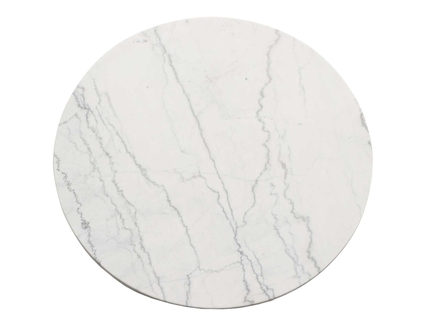 Round and flowing, the Xena 52″ Round Marble Table is an elegant setting for an evening dinner or morning coffee. A beautiful round white marble top rests gracefully atop an ebony cross-timber plank table base in a mix of formal and informal designs that relaxes the table to a more casual presentation. The 52″ round table seats up to six for a charming and delightful setting for any occasion.