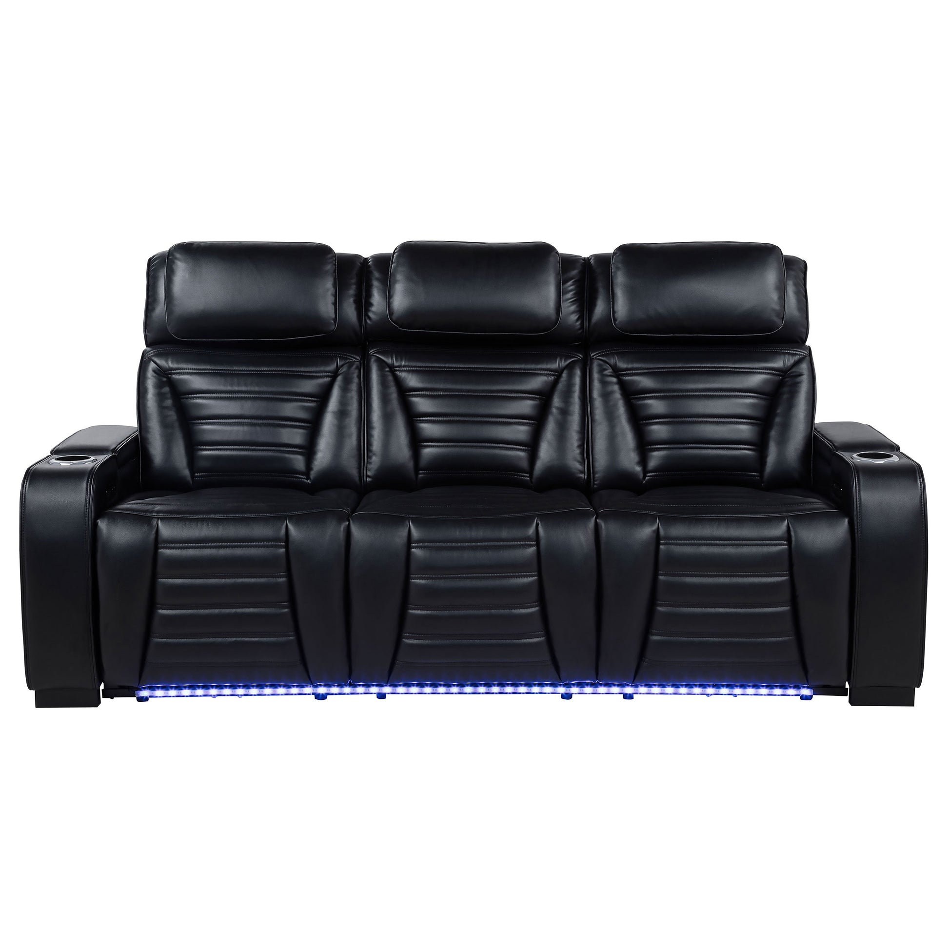 Zuma Faux Leather Dual Power Reclining LED Sofa Black